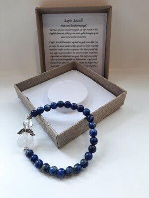 Natuurstenen armband, Lapis Lazuli, met beschermendengel. Kralen zijn 6 mm.