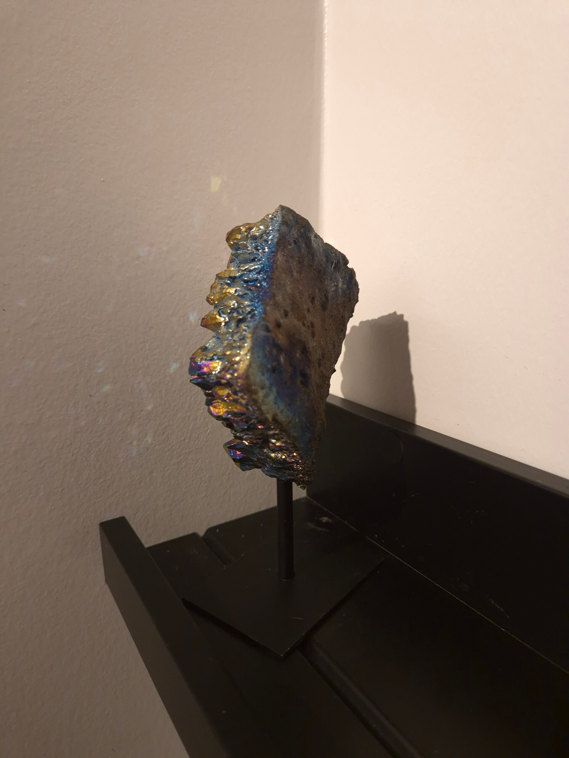 De goudbehandeling verandert het kristal permanent en daarmee ook de werking. De vibratie van het kristal neemt toe en dient als een perfecte auracleaner. Het is een goede beschermer tegen negatieve emoties en invloeden. Het versterkt je eigen kunnen en haalt het beste van jezelf naar boven.