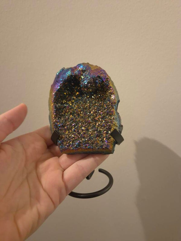 Een regenboog aura kristal is een kristal met een gekleurde teint. Deze is verkregen door het kristal te behandelen met een goud infusie. Dit gebeurt in een vacuumkamer bij een temperatuur van 871°C. Gouddamp wordt aan de kamer toegevoegd en de atomen versmelten samen met het oppervlak van het kristal voor een mooie iriserende metaalglans.