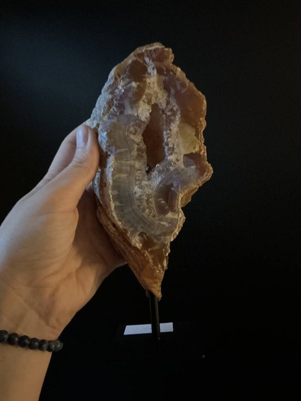 Agaat heeft een aardende, stabiliserende en beschermende werking. Het heeft een kalmerend effect, zorgt voor een veilig gevoel en bevordert zowel geestelijke als emotionele rust en evenwicht. Het helpt bij het accepteren van zichzelf en het opbouwen van zelfvertrouwen. Agaat stimuleert de concentratie en het analytisch denken, en helpt om afstand te nemen en objectiever naar zaken en zichzelf te kijken. Dit zorgt voor overzicht en inzicht, en ondersteunt planmatig werken en het vinden van praktische oplossingen. Het helpt bij het stellen van doelen en het werken naar deze doelen toe, wat persoonlijke groei en ontwikkeling stimuleert. Agaat biedt ook bescherming tijdens het reizen. Op fysiek niveau heeft agaat een positieve invloed op het immuunsysteem, het zenuwstelsel en zenuwpijn, de spijsvertering, het hart, de bloedvaten, de ogen, de maag, de darmen, de blaas en bedplassen. Het stimuleert de stofwisseling. Vanwege de beschermende eigenschappen is agaat een geschikte steen voor vrouwen om te dragen tijdens de zwangerschap, omdat het groei stimuleert en een positieve invloed heeft op de baarmoeder. De energie van agaat is zacht en kalm. Hierdoor kan het wat langer duren voordat de steen effect heeft, maar is het wel zeer geschikt voor gevoelige mensen en kinderen.