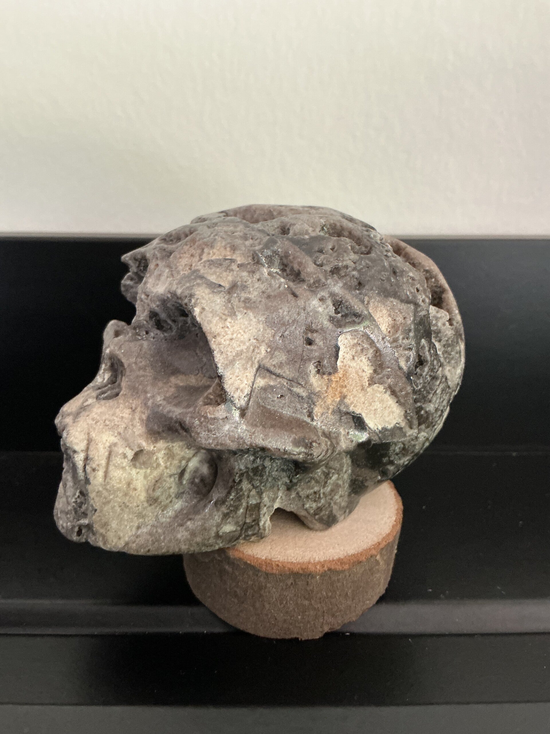 Een sfaleriet schedel combineert de eigenschappen van het mineraal sfaleriet (ZnS) met de spirituele symboliek van een schedel.
