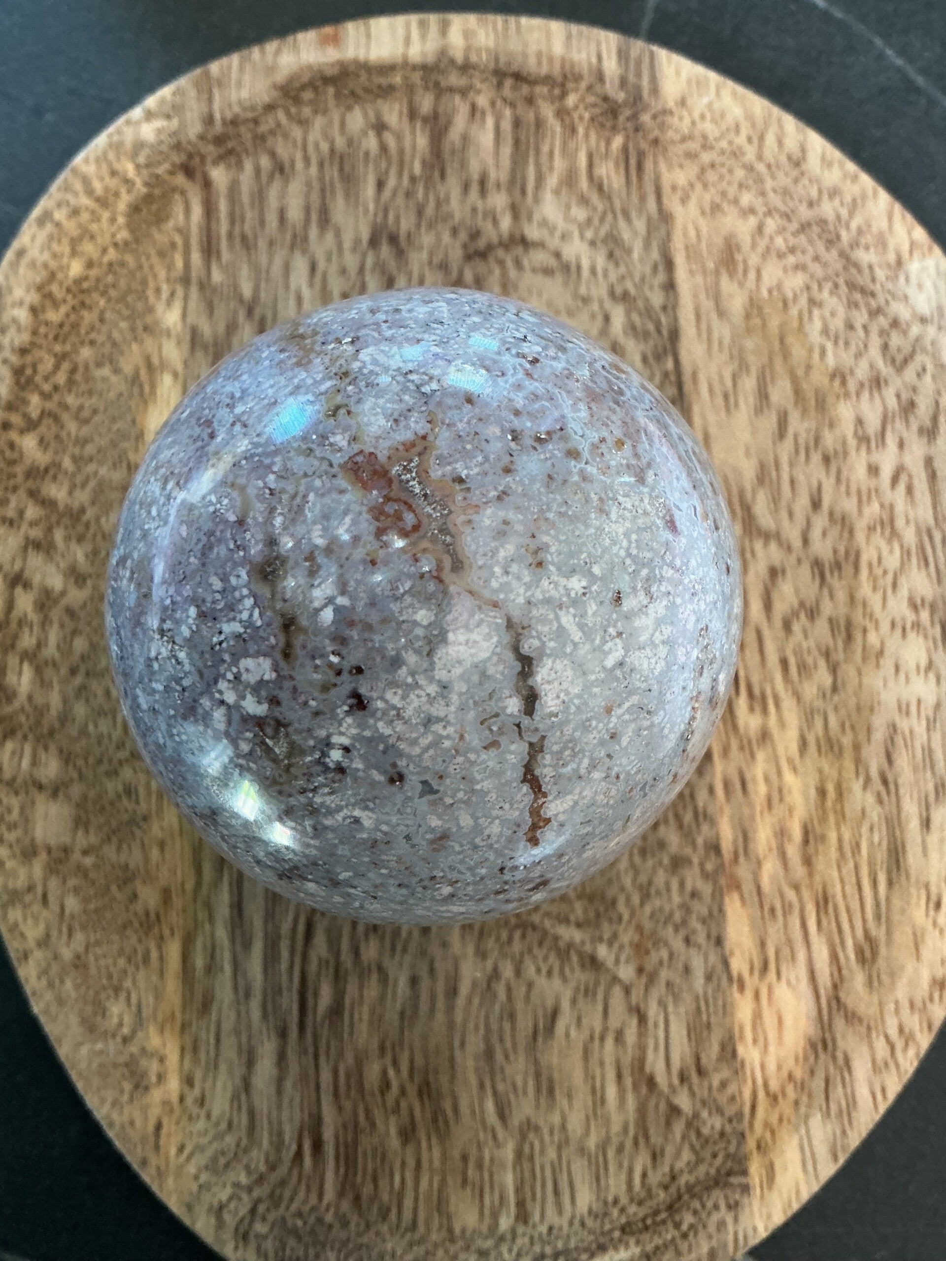 Oceaan Jaspis staat bekend als een helende en kalmerende steen. In bolvorm verspreidt deze steen zijn energie gelijkmatig in alle richtingen. Het kristal ondersteunt bij emotioneel evenwicht, stressvermindering en innerlijke rust. Daarnaast bevordert het positieve communicatie, zelfliefde en helpt het bij het loslaten van negatieve patronen. Door de connectie met water heeft Oceaan Jaspis ook een sterke link met zuivering en stroming, wat helpt om blokkades op te heffen, zowel mentaal als energetisch.