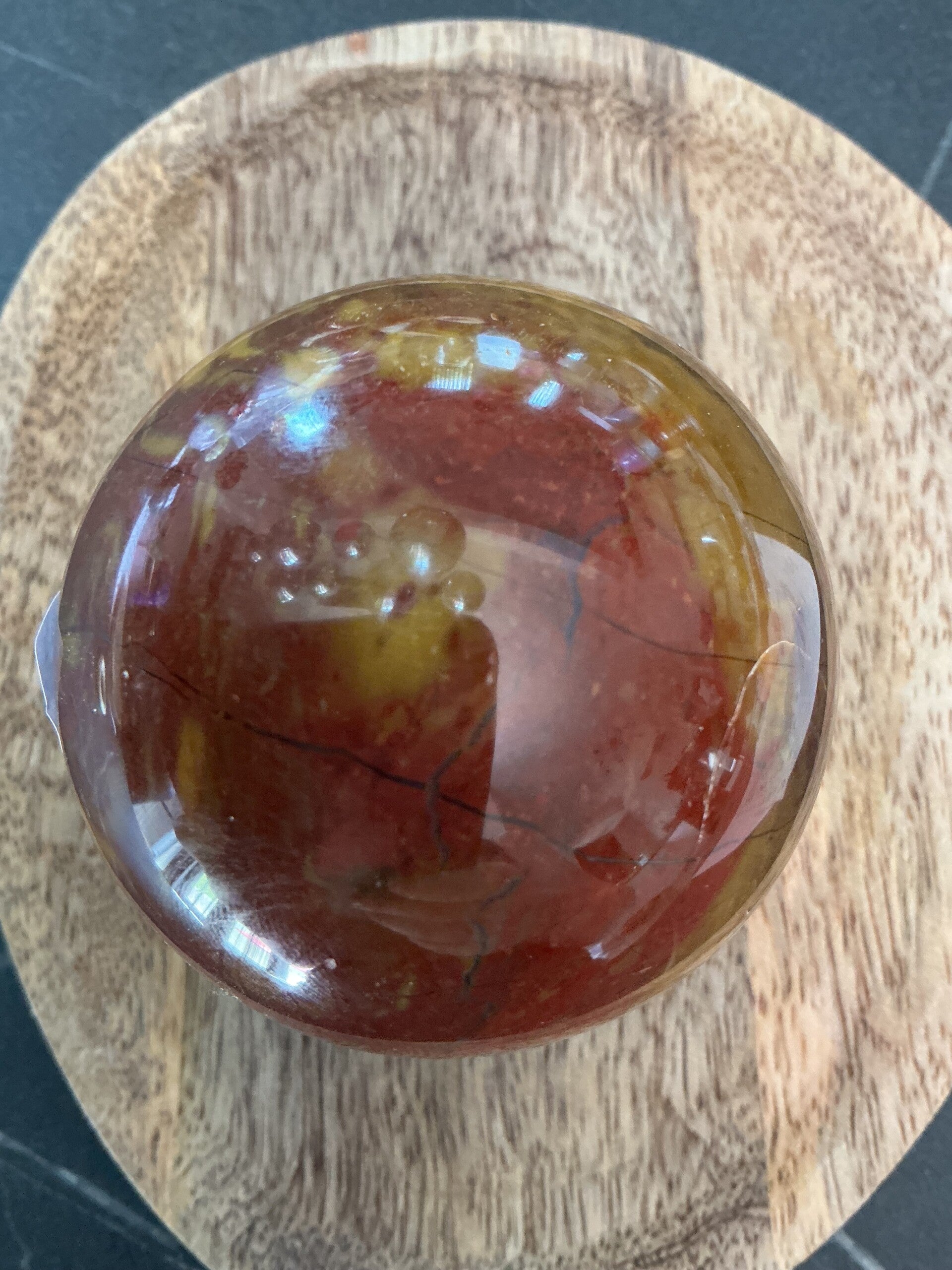 Oceaan Jaspis staat bekend als een helende en kalmerende steen. In bolvorm verspreidt deze steen zijn energie gelijkmatig in alle richtingen. Het kristal ondersteunt bij emotioneel evenwicht, stressvermindering en innerlijke rust. Daarnaast bevordert het positieve communicatie, zelfliefde en helpt het bij het loslaten van negatieve patronen. Door de connectie met water heeft Oceaan Jaspis ook een sterke link met zuivering en stroming, wat helpt om blokkades op te heffen, zowel mentaal als energetisch.