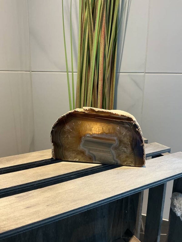 Breng warmte, rust en elegantie in je interieur met deze unieke Agaat waxinehouder. Met de hand vervaardigd uit echte agaatsteen – een halfedelsteen bekend om zijn prachtige kleurschakeringen en energetische werking – is elk exemplaar een waar kunstwerk van de natuur.