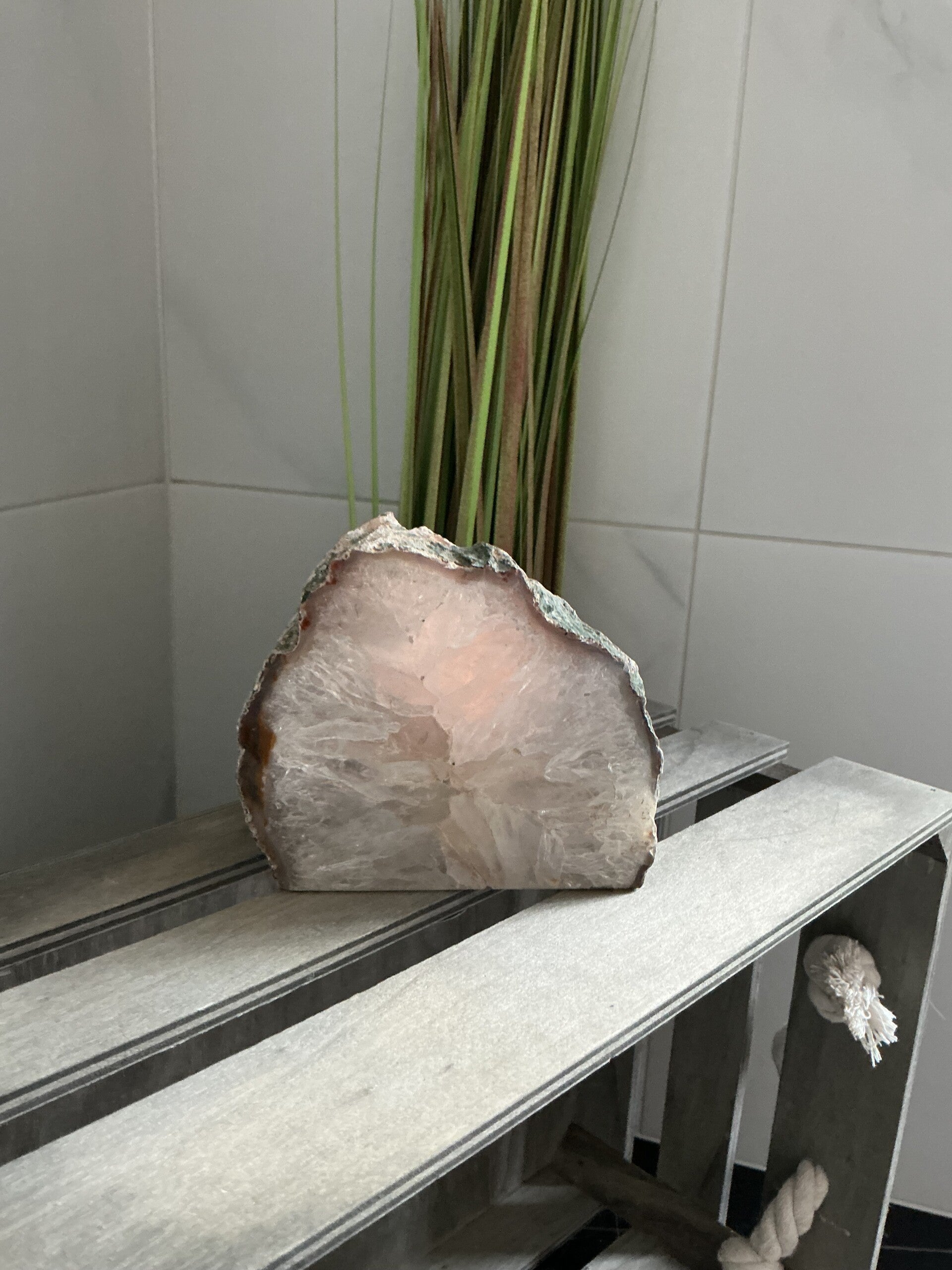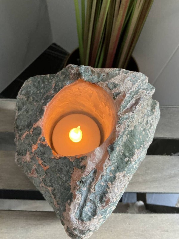 Agaat staat symbool voor balans, bescherming en innerlijke rust. Het zachte licht van een waxinelichtje wordt prachtig weerkaatst in de kristallen structuur, wat zorgt voor een warme, serene sfeer in elke kamer. Perfect voor yoga-ruimtes, meditatiehoeken, of als stijlvol accent op je salontafel.
