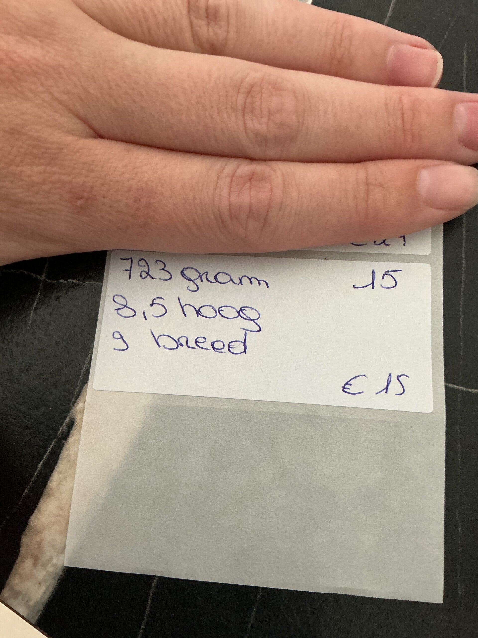 Afmetingen: 723gram, 8,5cm hoog en 9cm breed