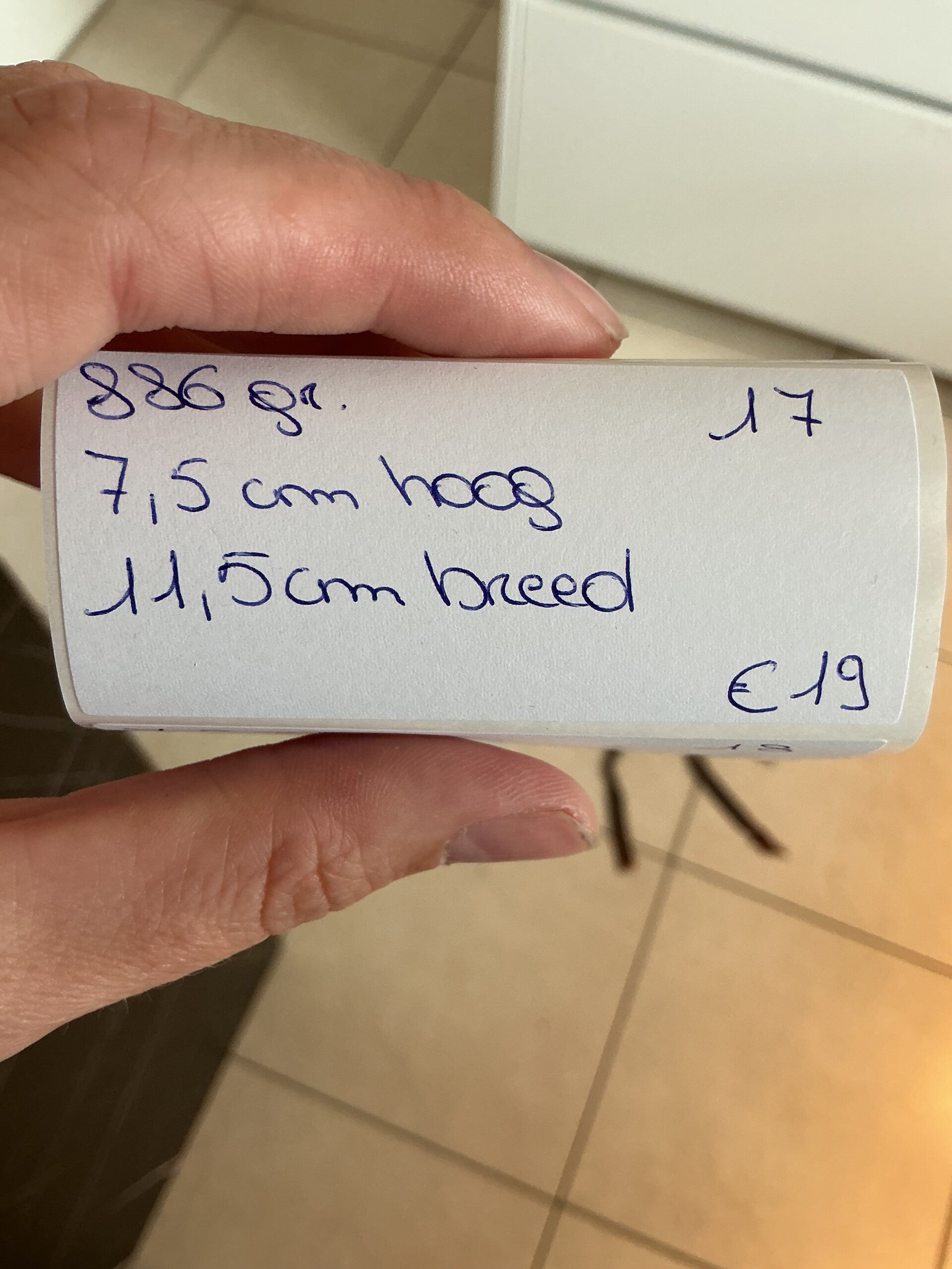 Afmetingen: 886gram, 7,5cm hoog en 11,5cm breed