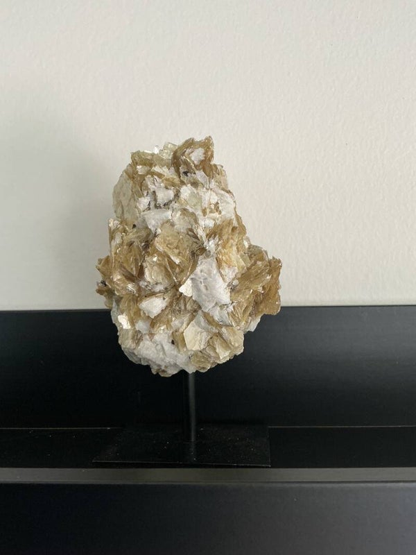 Deze prachtige Gouden Mica op een stijlvolle standaard is niet alleen een schitterend decoratiestuk, maar draagt ook een krachtige spirituele energie met zich mee.