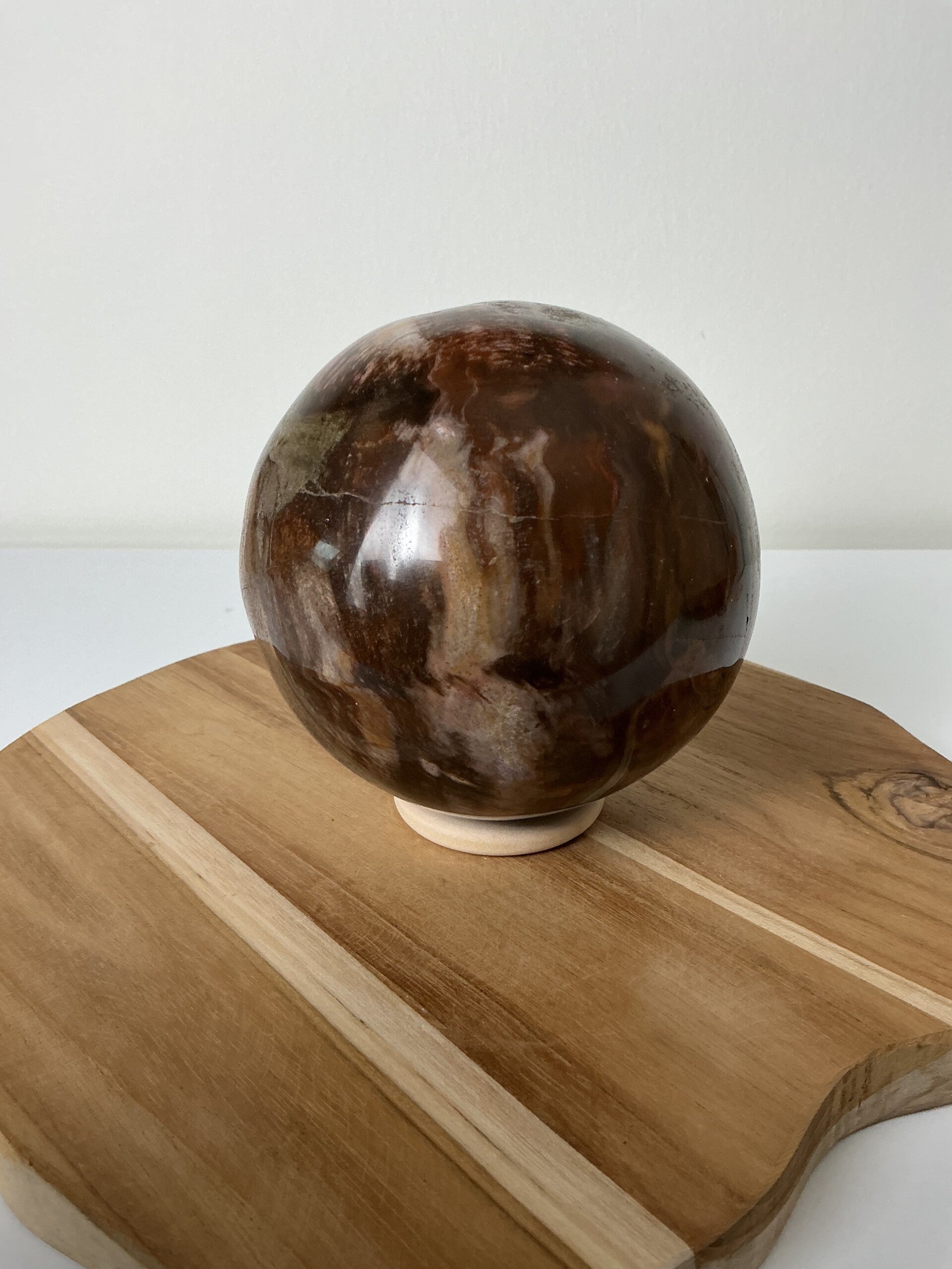 Deze prachtige bol van versteend hout straalt rust, stabiliteit en oeroude wijsheid uit. Versteend hout helpt je te aarden, ondersteunt bij transformatie en geeft kracht in tijden van verandering. De ronde vorm zorgt ervoor dat de energie zich zacht en gelijkmatig verspreidt, waardoor een harmonieuze sfeer ontstaat.
