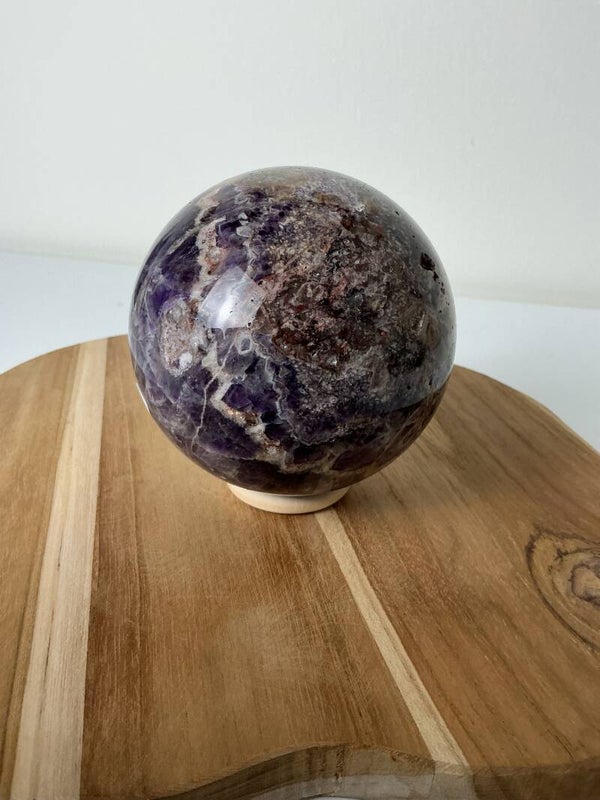 Een Chevron Amethist bol verspreidt zijn energie gelijkmatig in alle richtingen en werkt krachtig op het derde oog en de kruinchakra. Dit maakt hem ideaal om intuïtie, spirituele groei en innerlijke wijsheid te versterken. De karakteristieke V-vormige patronen symboliseren richting en focus, waardoor deze steen je helpt om oude patronen los te laten en een heldere visie voor de toekomst te ontwikkelen.