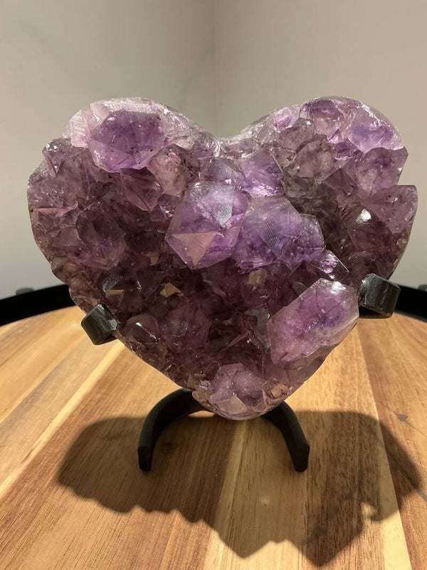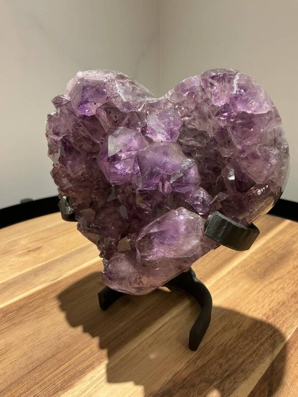 Breng rust, liefde en harmonie in je ruimte met dit prachtige amethist hart op standaard. Deze betoverende edelsteen is afkomstig uit de kristalrijke gebieden van Brazilië, waar de diep paarse amethist haar krachtige energie ontwikkelt.