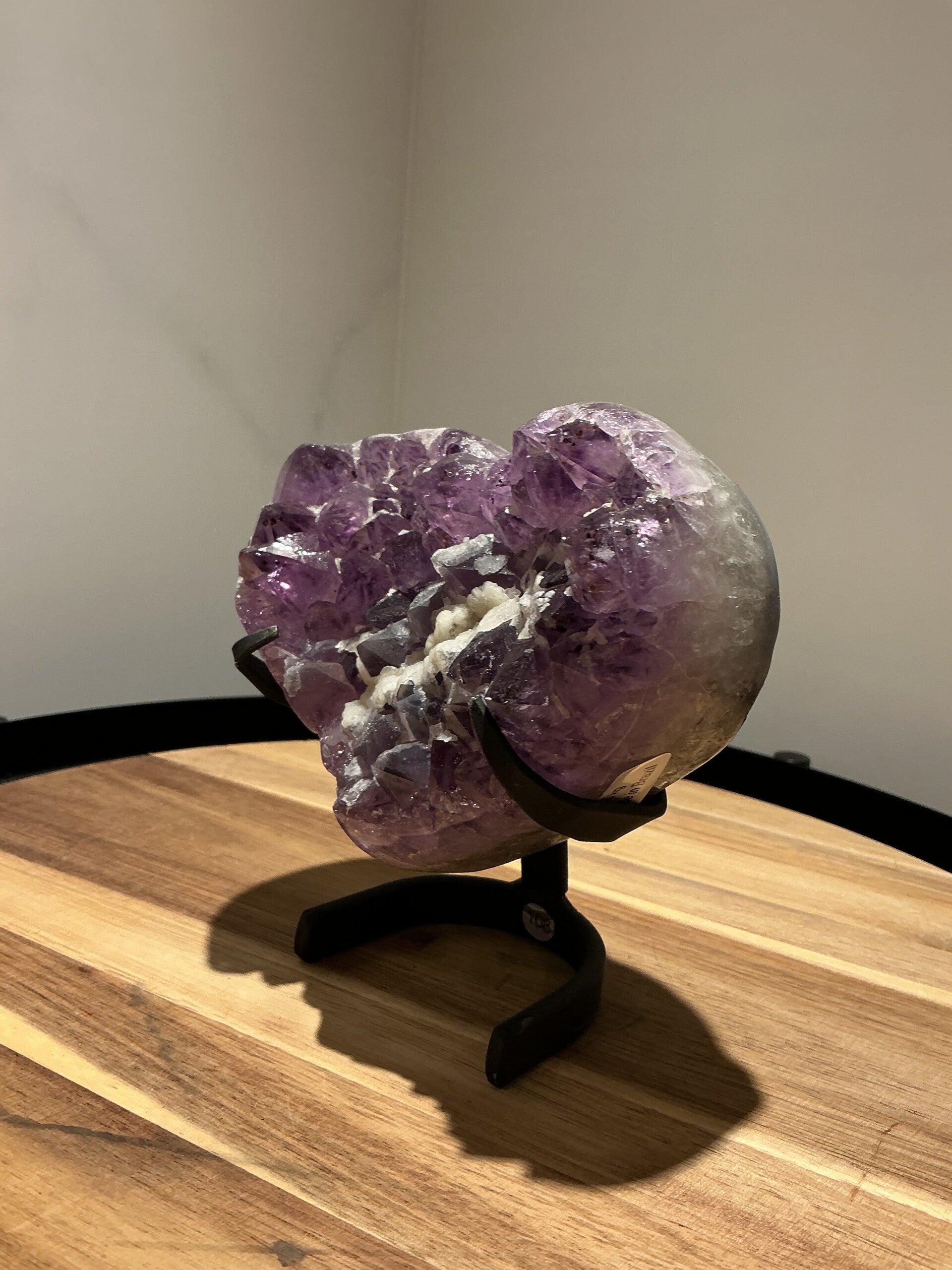 Breng rust, liefde en harmonie in je ruimte met dit prachtige amethist hart op standaard. Deze betoverende edelsteen is afkomstig uit de kristalrijke gebieden van Brazilië, waar de diep paarse amethist haar krachtige energie ontwikkelt.