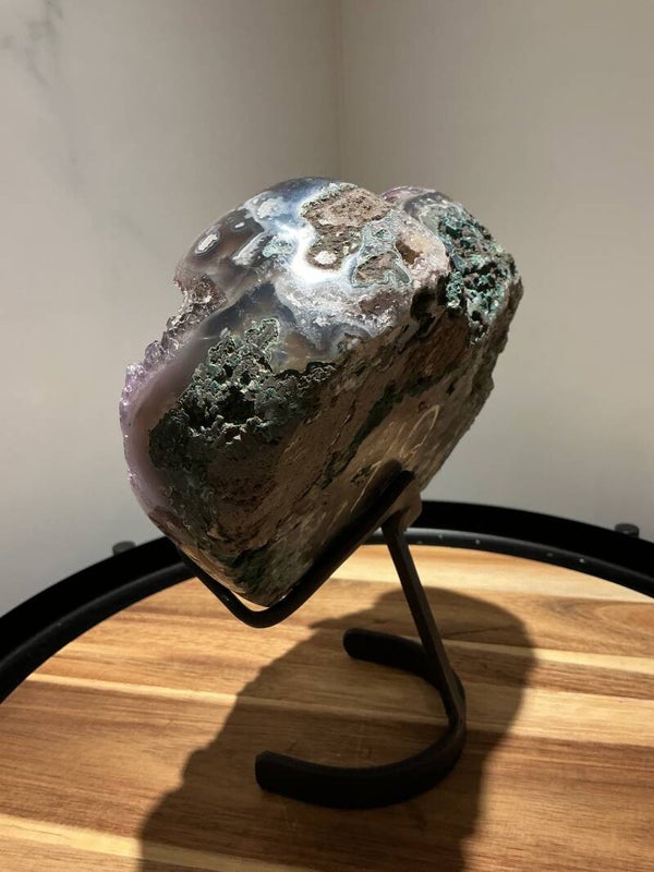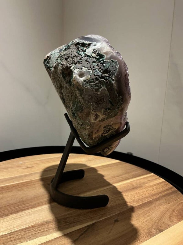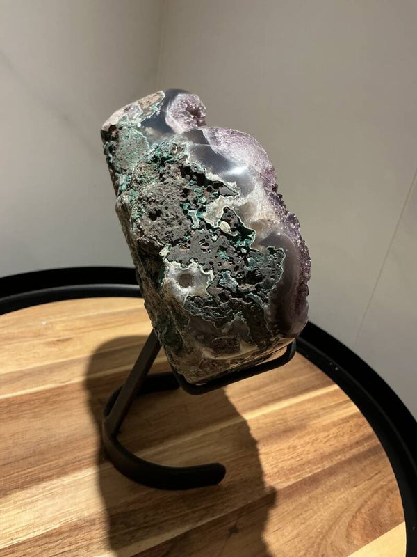 Plaats het amethist hart op standaard in je woonkamer, slaapkamer, praktijk of meditatieruimte om een sfeer van bescherming, kalmte en spirituele kracht te creëren.