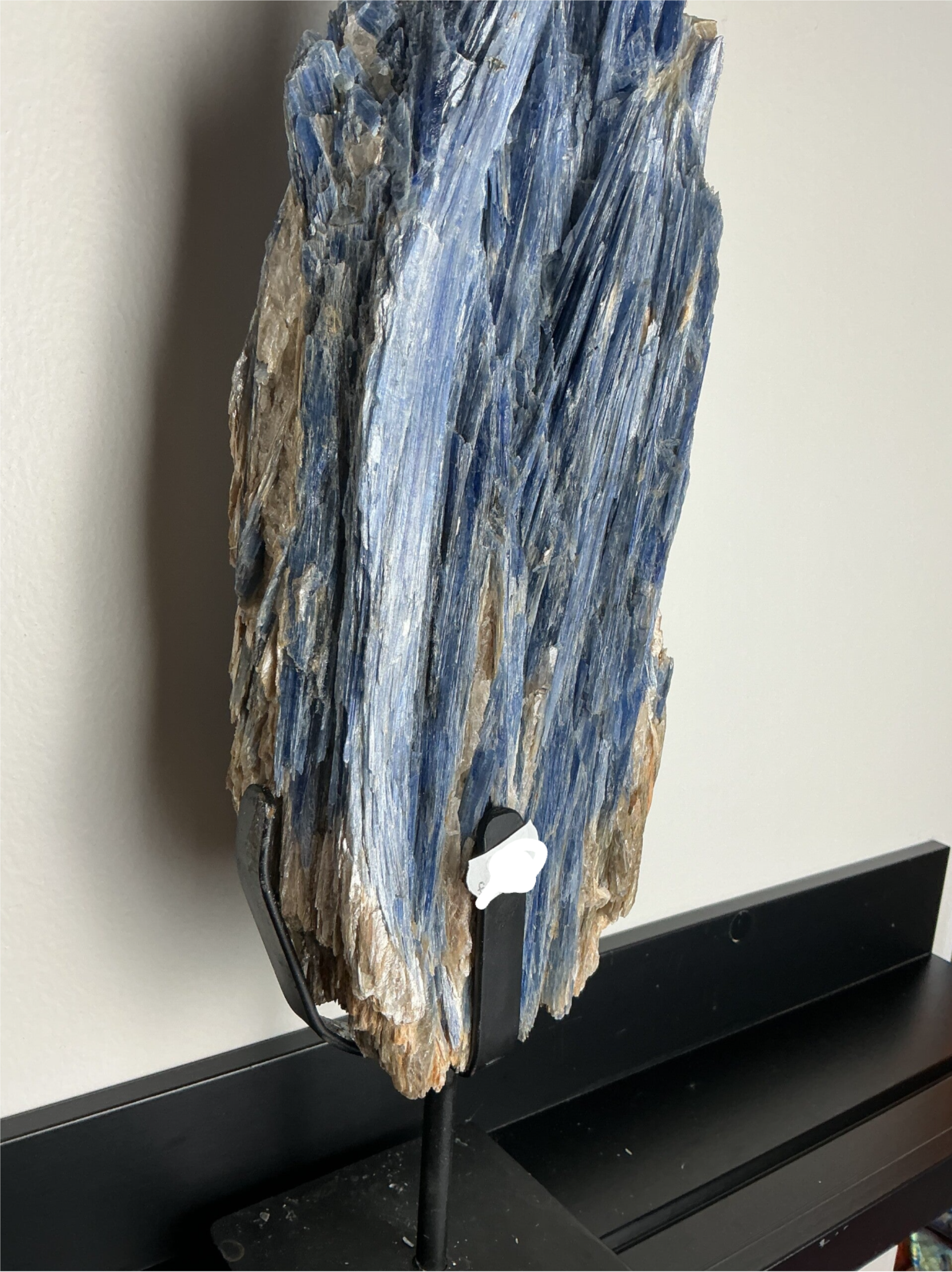 Deze indrukwekkende Blauwe Kyaniet op standaard straalt pure helderheid en verfijning uit. De langgerekte, natuurlijke kristalstructuur met diepblauwe tinten maakt dit stuk tot een krachtig energetisch object én een stijlvol pronkstuk voor elke ruimte. Elk exemplaar is uniek en volledig gevormd door de natuur.