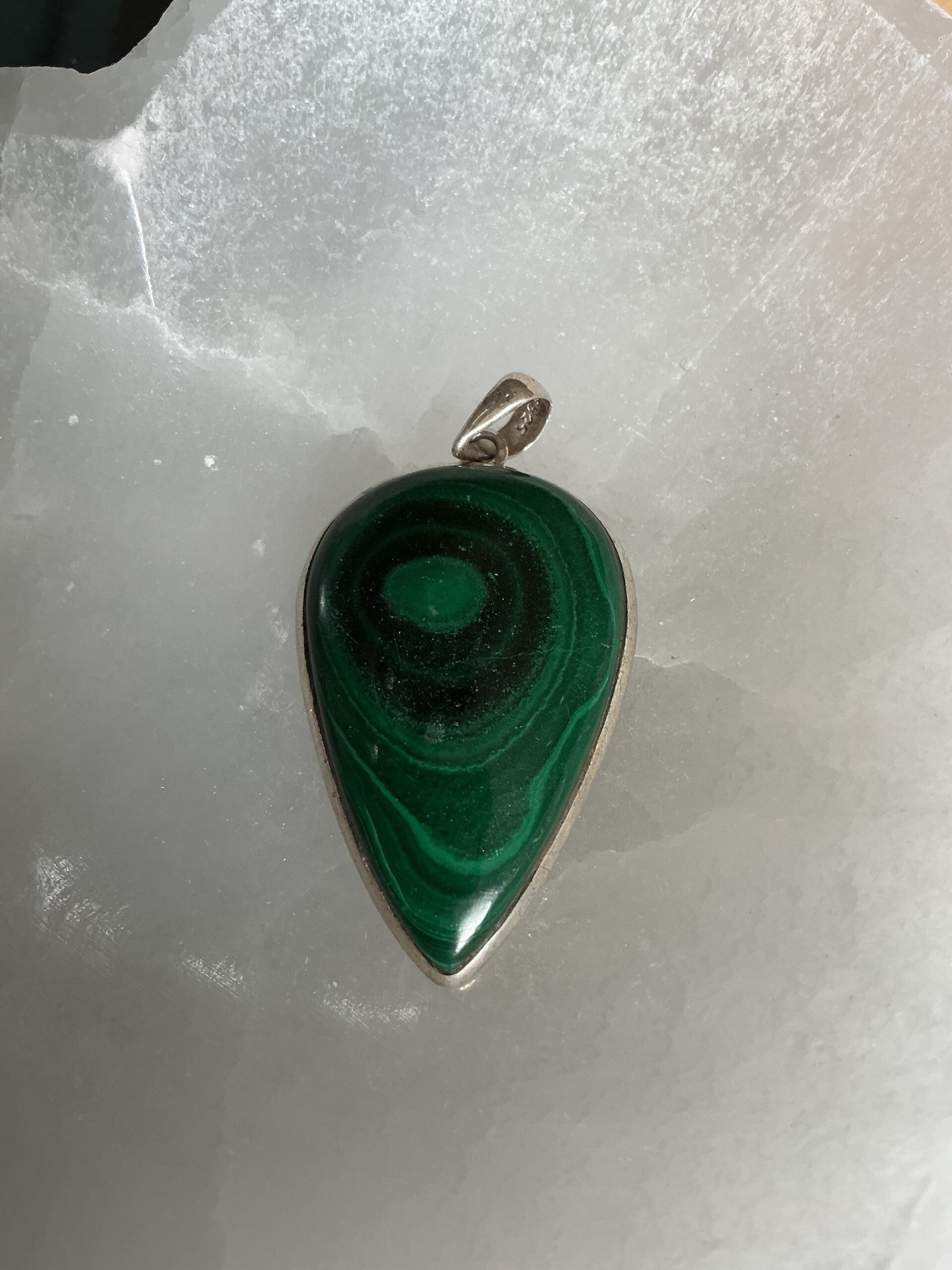 Deze krachtige Malachiet hanger in 925 sterling zilver straalt diepgroene tinten uit met prachtige, natuurlijke patronen. Elke steen is uniek en draagt een intense, aardende energie in zich.