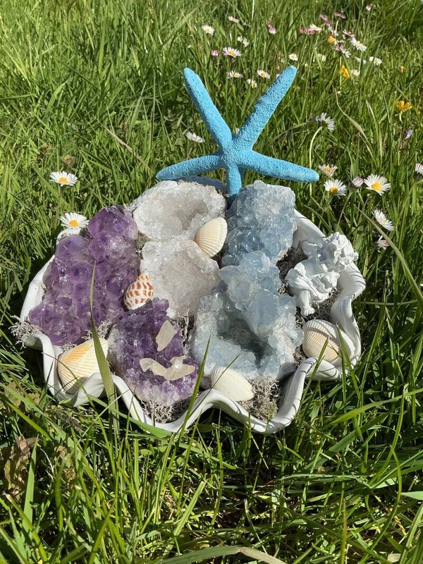 Deze bijzondere Venusschelp draagt de energie van zachtheid, overgave en vrouwelijke kracht. Gevuld met zorgvuldig gekozen kristallen vormt ze een krachtig energetisch rustpunt in je ruimte.